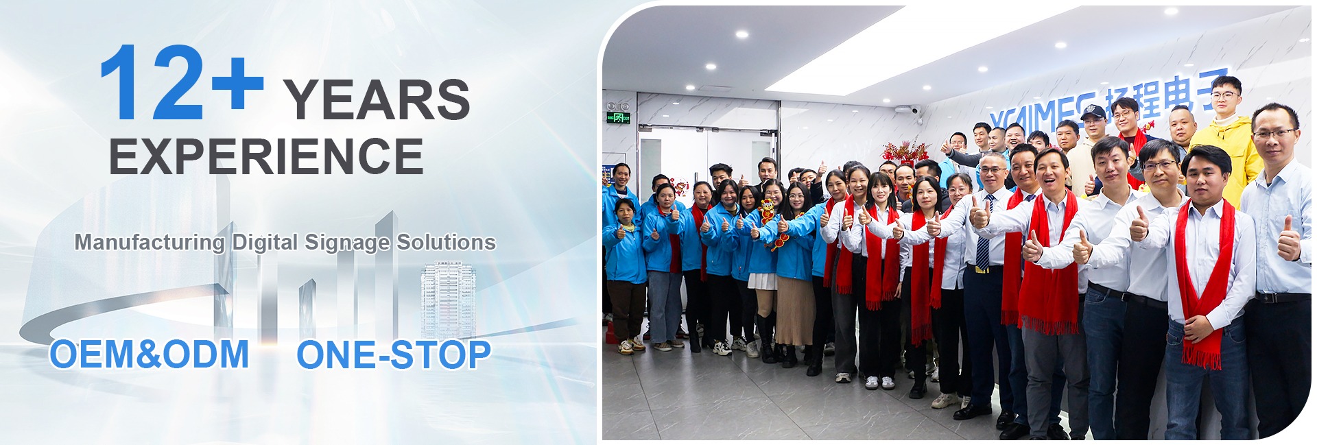 Guangzhou Yangcheng Electronics Co., Ltd. was founded in 2012. It is a national high-tech enterprise integrating product research and development, design, production, sales and service, and is a leading video display system solution provider in China. Our products include OLED transparent screen, LCD splicing screen, LED display, commercial display, multi-screen image processor and other series, and provide industry application solutions and customized services. The company is ISO9001, ISO14001, ISO45001 and safety management system certified enterprises, products through the CCC, CE, ROHS, energy saving and other authoritative organizations. We have a professional team of senior technical engineers, and in recent years, we have been awarded nearly one hundred design patents, and we have won the praise of domestic and foreign customers with our fine product quality!